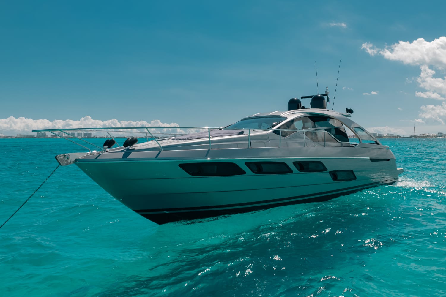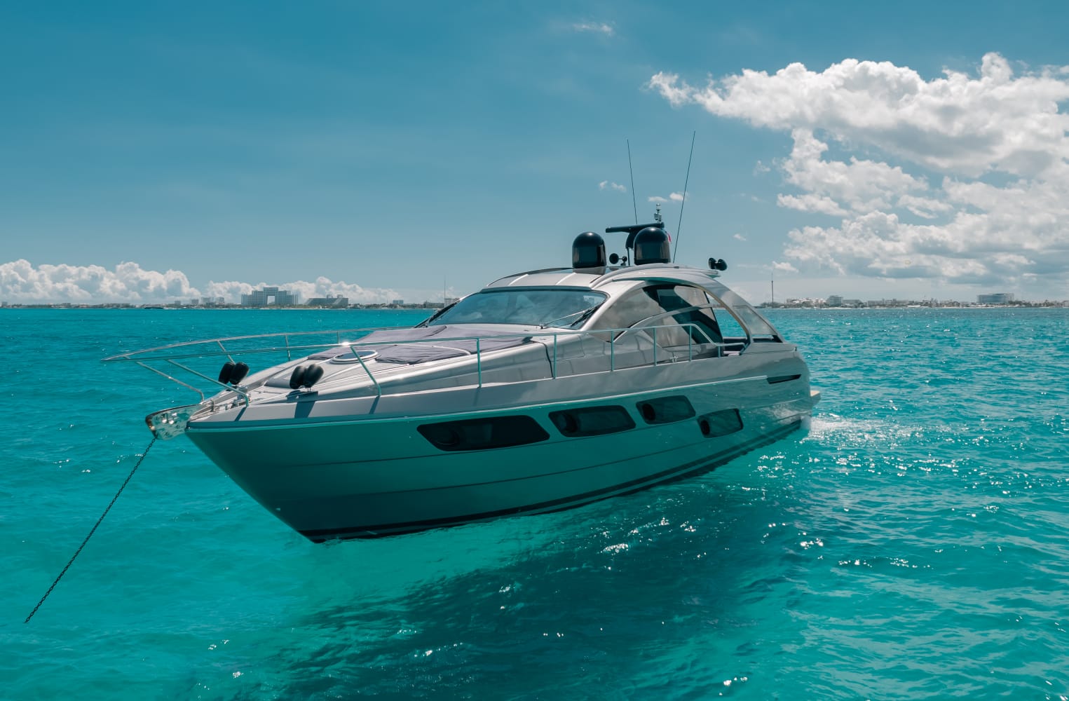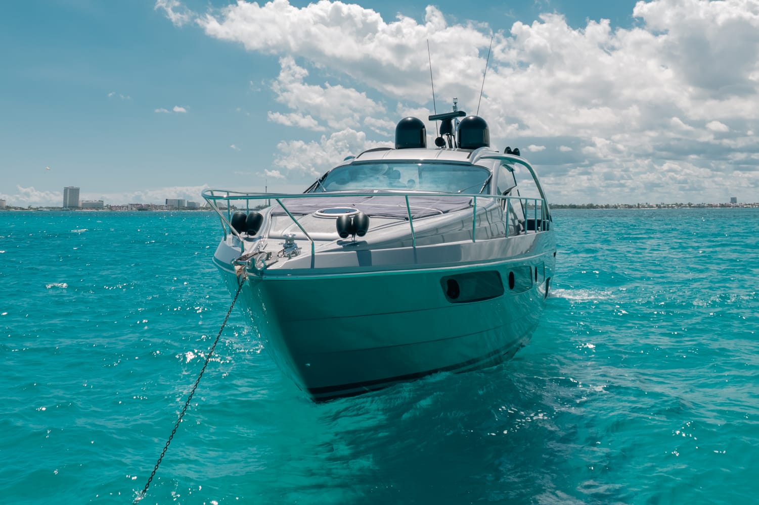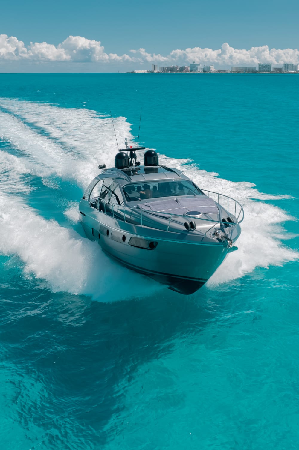 Diseño moderno y velocidad sobre el mar. Este yate deportivo combina lujo y potencia. Con 2 camarotes, aire acondicionado, sonido Bluetooth y áreas para relajarse bajo el sol, es ideal para explorar el Caribe con estilo.